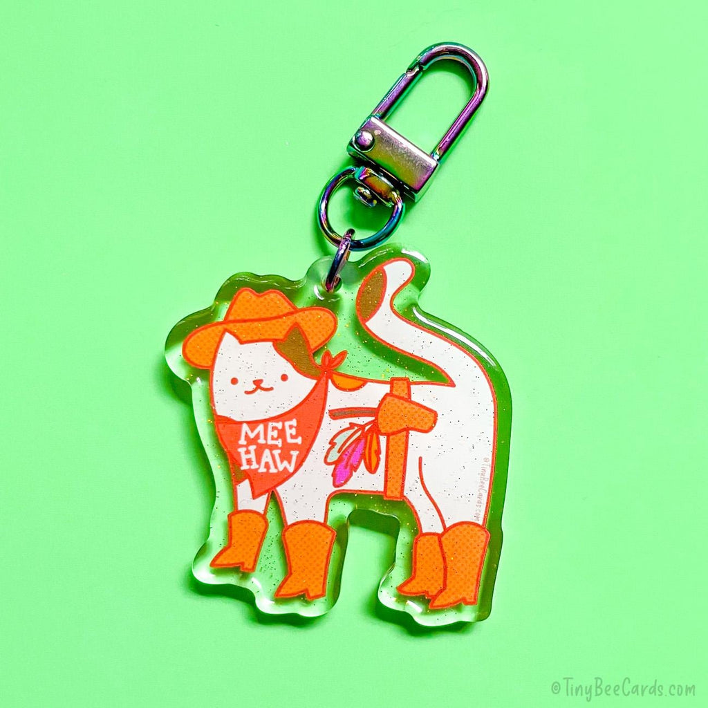 Mee Haw Cowboy Western Cat Glitter Acrylic Keychain
