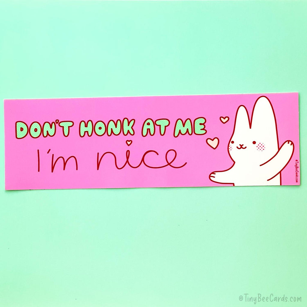 Bunny Vinyl Bumper Sticker - Don't Honk I'm Nice, Friendly Driver